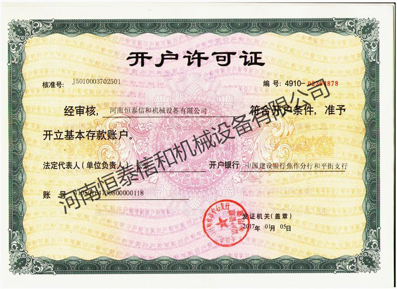 恒泰信和開戶許可證